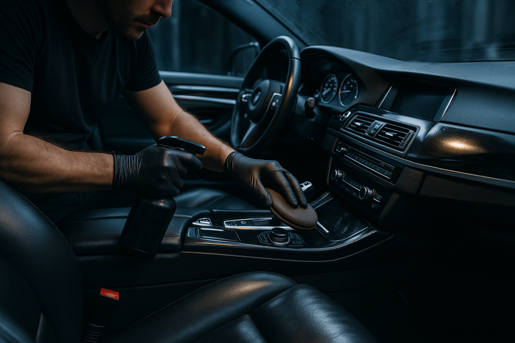 Kompleksowe czyszczenie i konserwacja wnętrza pojazdu – tapicerki, skóry, plastików i elementów dekoracyjnych.